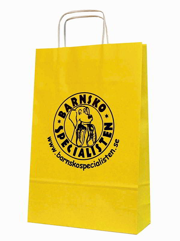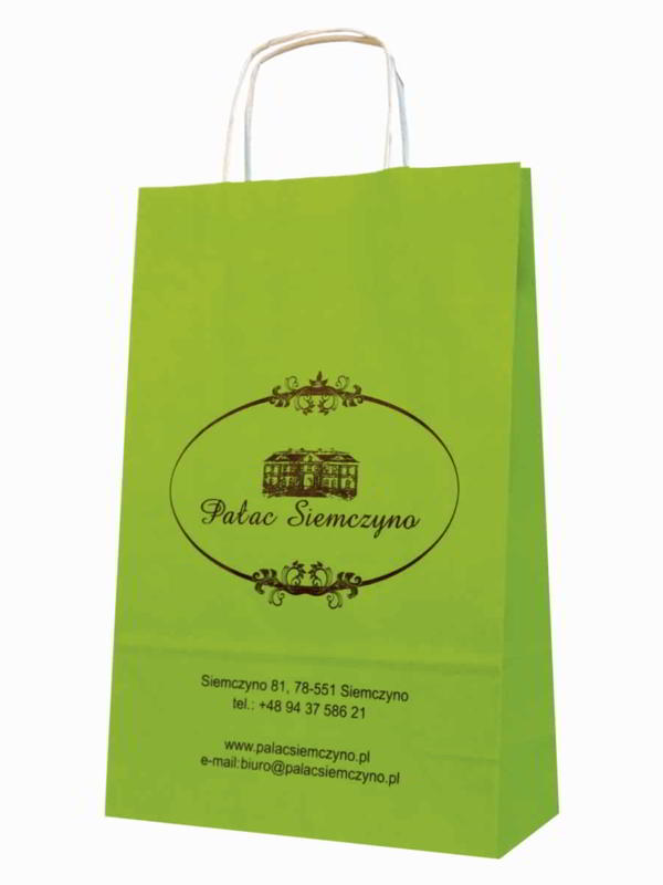 Torby wykonane są z papieru o gramaturze od 80 do 120 g/m2. Uchwyt skręcany wklejany jest wewnątrz torby. Posiadamy 9 kolorów toreb papierowych: bordowy, ciemnobrązowy, czarny, czerwony, granatowy, pomarańczowy, ciemnozielony, jasnozielony i żółty. Apla kolorystyczna nakładana jest na białym papierze, dzięki temu dany kolor torby charakteryzuje się żywą i wyrazistą barwę.
